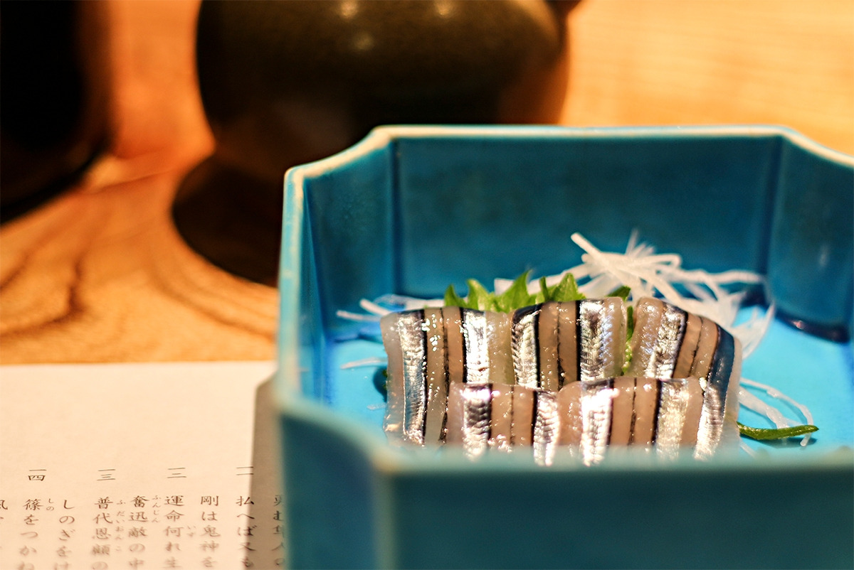 기나긴 여정의 시작은 영롱한 빛깔의 회 한 접시와 함께한다. 이것은 '키비나고'라고 불리는 청어과의 생선으로 우리나라에서는 샛줄멸이라는 이름으로 불리운다. 제주도 근해에서 많이 잡히는데, 그곳에서는 '꽃멸치'라고 부른다고 하니 그것이 조금 더 익숙할지도 모르겠다. 가고시마 역시 이 생선의 유명한 산지 중 하나로서 이곳에서 잡히는 녀석들이 특히나 맛이 좋다고 하는데, 처음 먹어보는 생선인지라 그 진위 여부는 확인할 길이 마땅찮다.