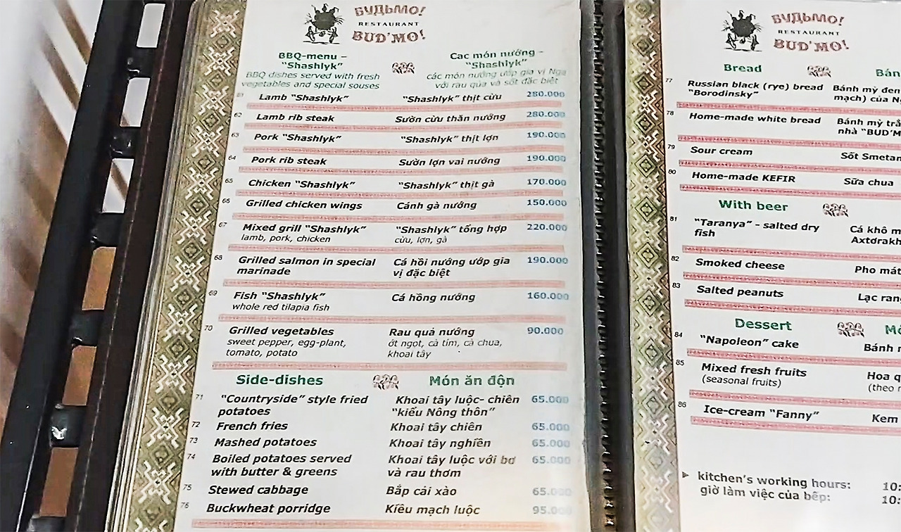 2주에 가까운 꽤 긴 시간을 보낸 것도 이유겠지만 하노이라는 도시 자체가 워낙 맛있는 음식이 많은 동네다. 매일이 다음 끼니를 기대하고 기다리는 시간의 연속이었으니 여행은 즐거움으로 가득할 수밖에 없었다. 그런 와중에도 유난히 인상적인 경험으로 기억되는 곳이 있다. 서호 동쪽에 위치한 식당이다. 상당히 훌륭한 우크라이나 음식을 즐길 수 있다. 지금부터 '버드모'로 함께 떠나자.
